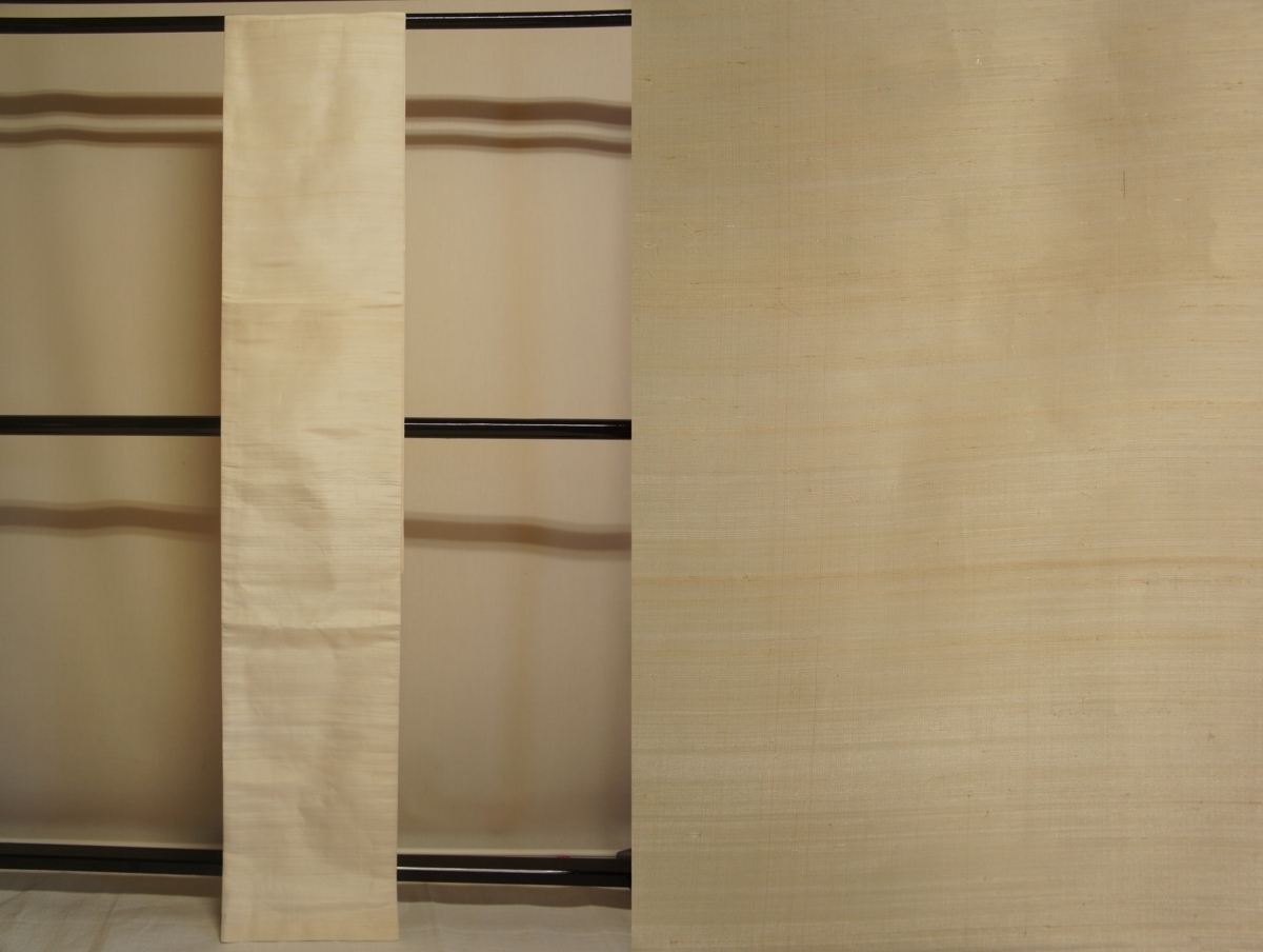 - 特選稀少芭蕉絹交織生成り色無地未着用袋帯[O12639]