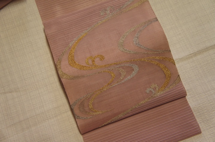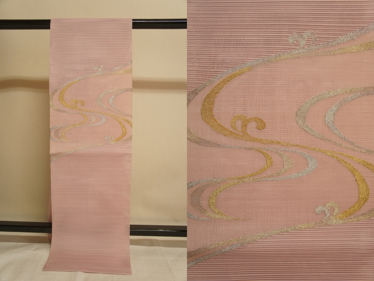 - 特選『浅野織屋』手織絽綴うす蒲萄色流水紋名古屋帯N11601