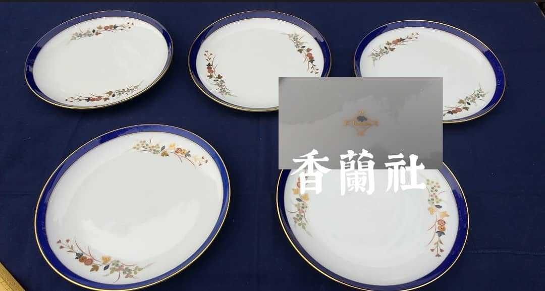- 昭和50年代 香蘭社 菊梅萩紋瑠璃金彩縁 中皿 5枚組 サイズ(直径19.5㌢高さ2㌢重さ300㌘) 昭和50年代、一部の商品に用いられた裏印。
