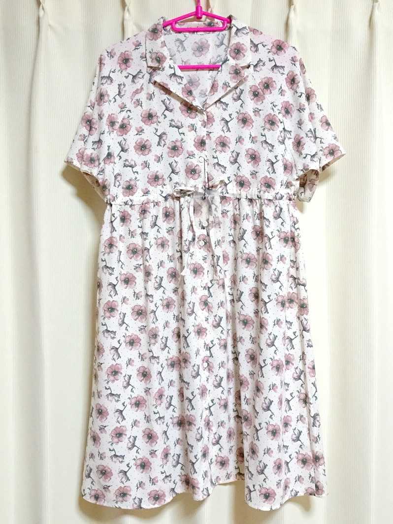 > 1841 送料無料 新品未使用 イーハイフンワールドギャラリー ジョーゼット 花柄 ドット ワンピース 半袖 オフホワイト ピンク フリーサイズ