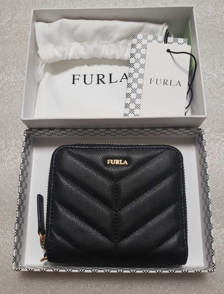- 未使用 フルラ FURLA レザー 二つ折り財布 ブラック 黒 キルティング ウォレット 収納袋・化粧箱付き MAGIA S ZIPAROUND 0993355 ONYX