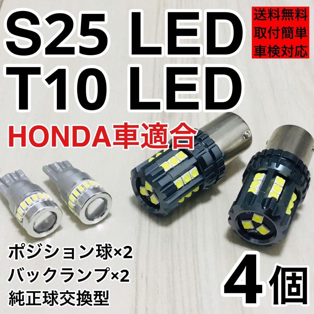 - T10 LED ポジション球2個 S25 シングル バックラン2個 爆光 汎用セット ポン付け 純正球交換用バルブ ホワイト 4個セット ホンダ