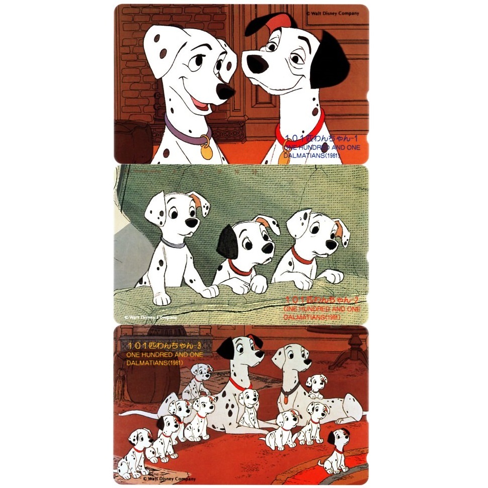 - テレホンカード ディズニー 101匹わんちゃん Disney One Hundred and One Dalmatians(1961) 3種各1枚 未使用 ダルメシアン 大行進 テレカ