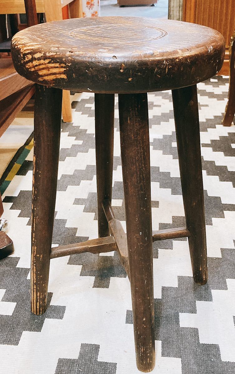 - [昭和レトロ 丸椅子]木製/丸イス/スツール/当時物/アンティーク/106