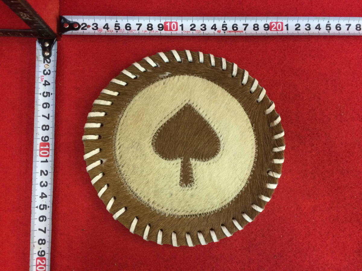 - 昭和レトロ_バッファロー 本水牛革 パッチワーク コースター / スペード_0191