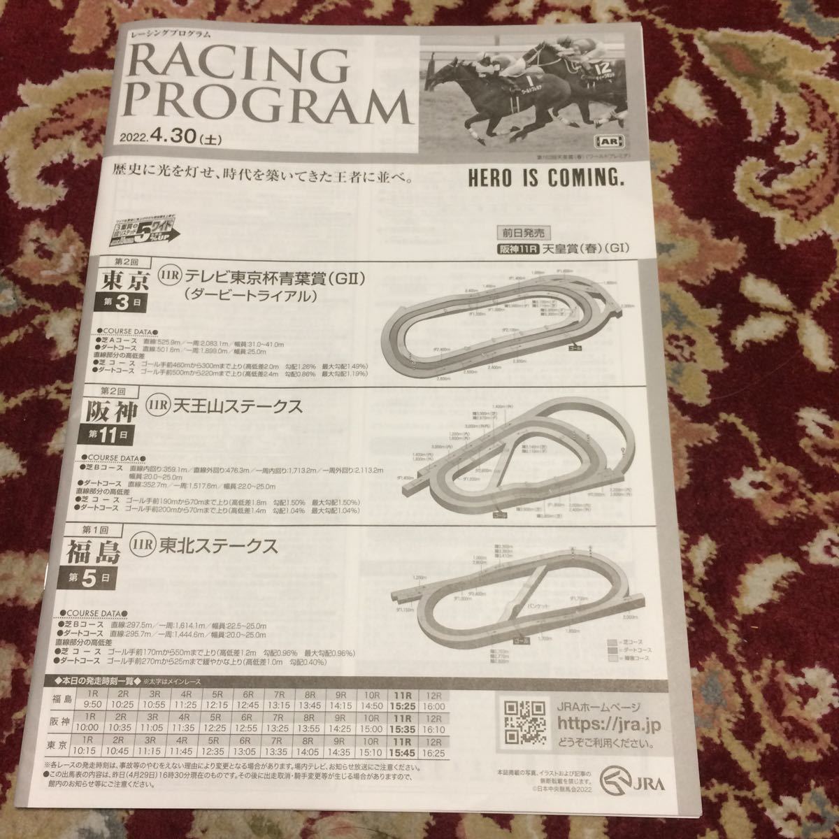 - JRAレーシングプログラム2022.4.30(土)青葉賞(GⅡ)、天王山ステークス、東北ステークス