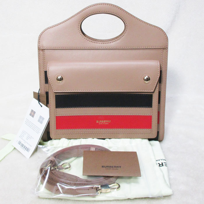 - BURBERRY バーバリー ミニポケットバッグ 80367911 2WAYハンドバッグ キャメルブラウン 未使用美品