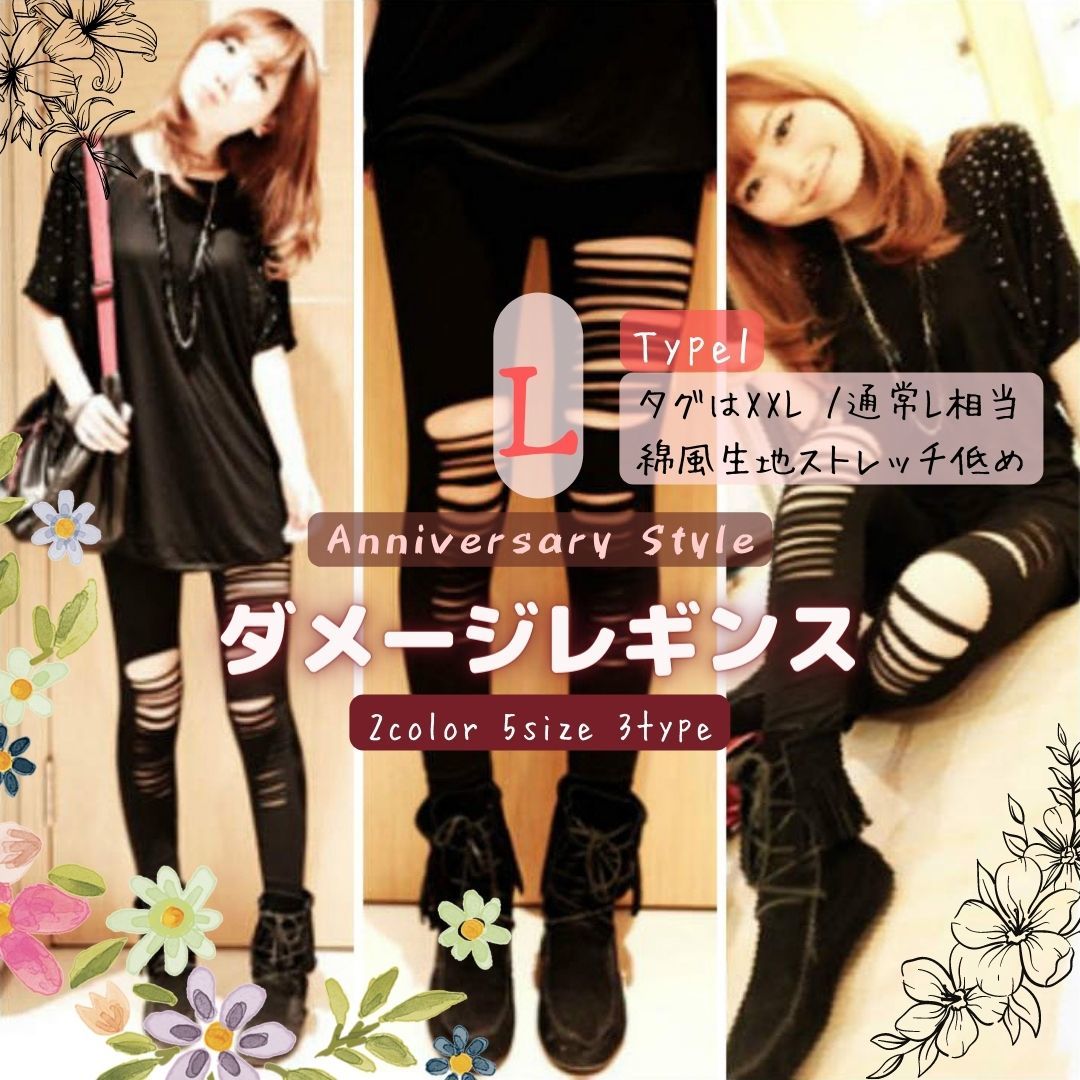 - 黒 XXL type1 (L相当) レギンス ダメージ加工 ストレッチ スパッツ 610486 クラッシュ スパッツ ボトムス 春