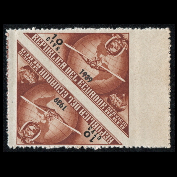 - ■エラー切手■ エクアドル 1939年 コロンブス記念 10c /三角形 /無目打 /印刷ズレ /耳
