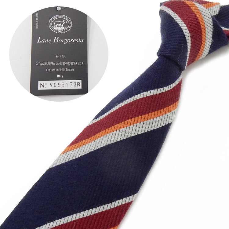 - ウールネクタイ 伊ゼニアバルファ社 キャッシュウール 濃紺系/ストライプ 日本縫製 Gentil uomo zeg115