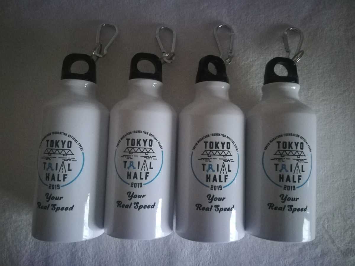 > 東京トライアルハーフマラソン2019 TOKYO TRIAL HALF2019 アルミ水筒4本セット カラビナ付 旅行用 犬の散歩用