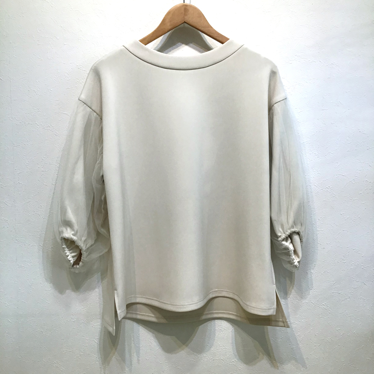 - 【送料無料】Rose Tiara ローズティアラ カットソーチュールバルーンスリーブプルオーバー トップス ベージュ アイボリー 42 E4-69
