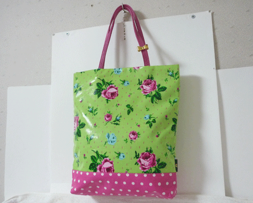 > 良品 シンクビー Think Bee! マルチカラー薔薇柄 イエローグリーン ピンク ホワイト ドット柄 トート ハンド バッグ レディース
