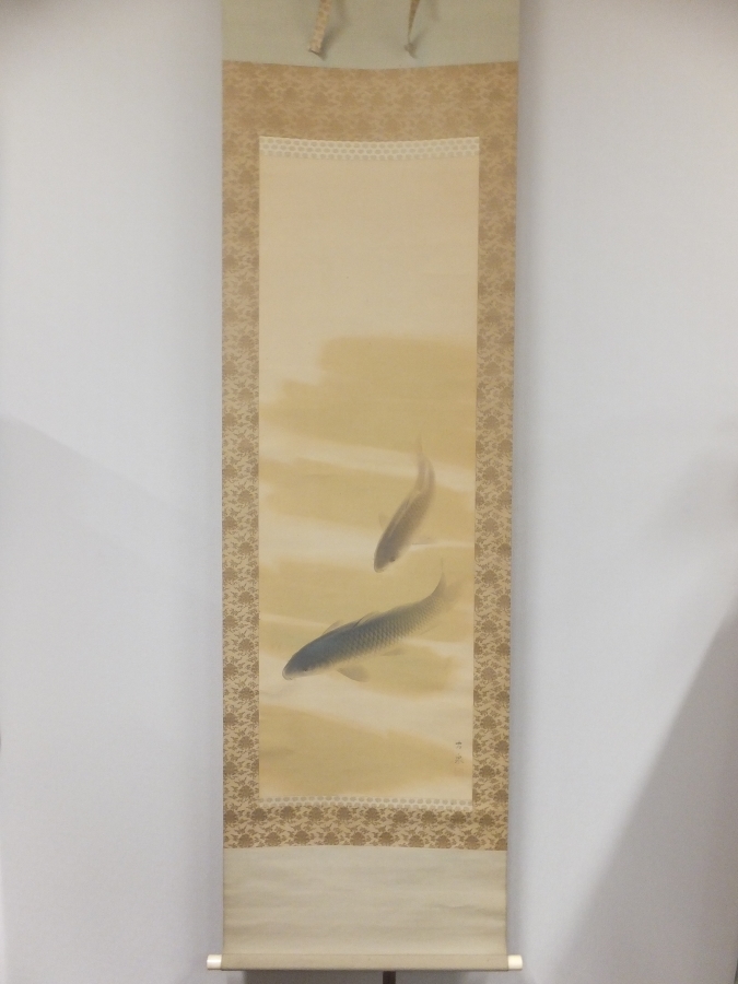 - 【真筆保証】 高木古泉 直筆 雙鯉 日本画家 鯉描きの名手 コレクター放出品 (福田平八郎 堅山南風) 熊本県 掛軸作品何点でも同梱可