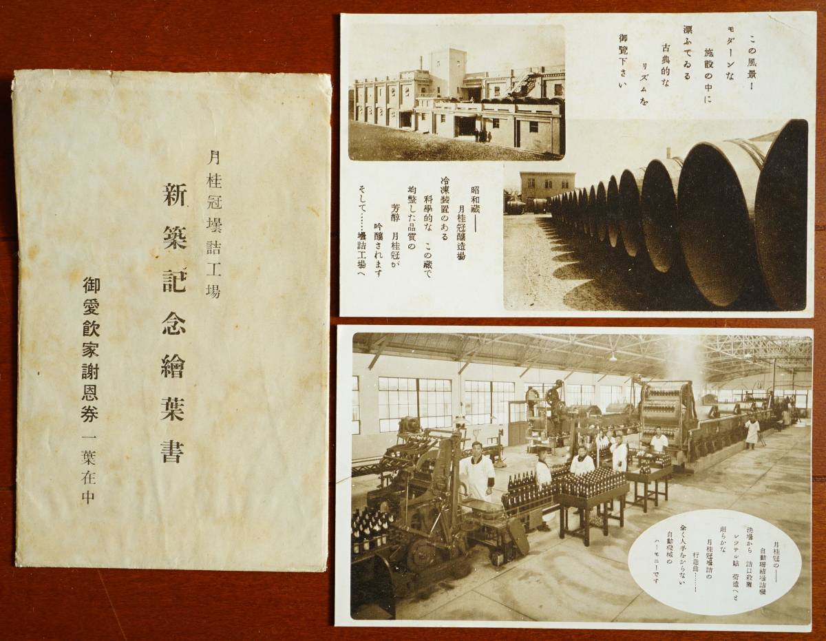 - 月桂冠瓶詰工場 新築記念絵葉書 2枚 昭和初期 検:木桶 箍編み 冷房装置付き鉄筋コンクリート造り酒蔵「昭和蔵」自動化ビン詰プラント