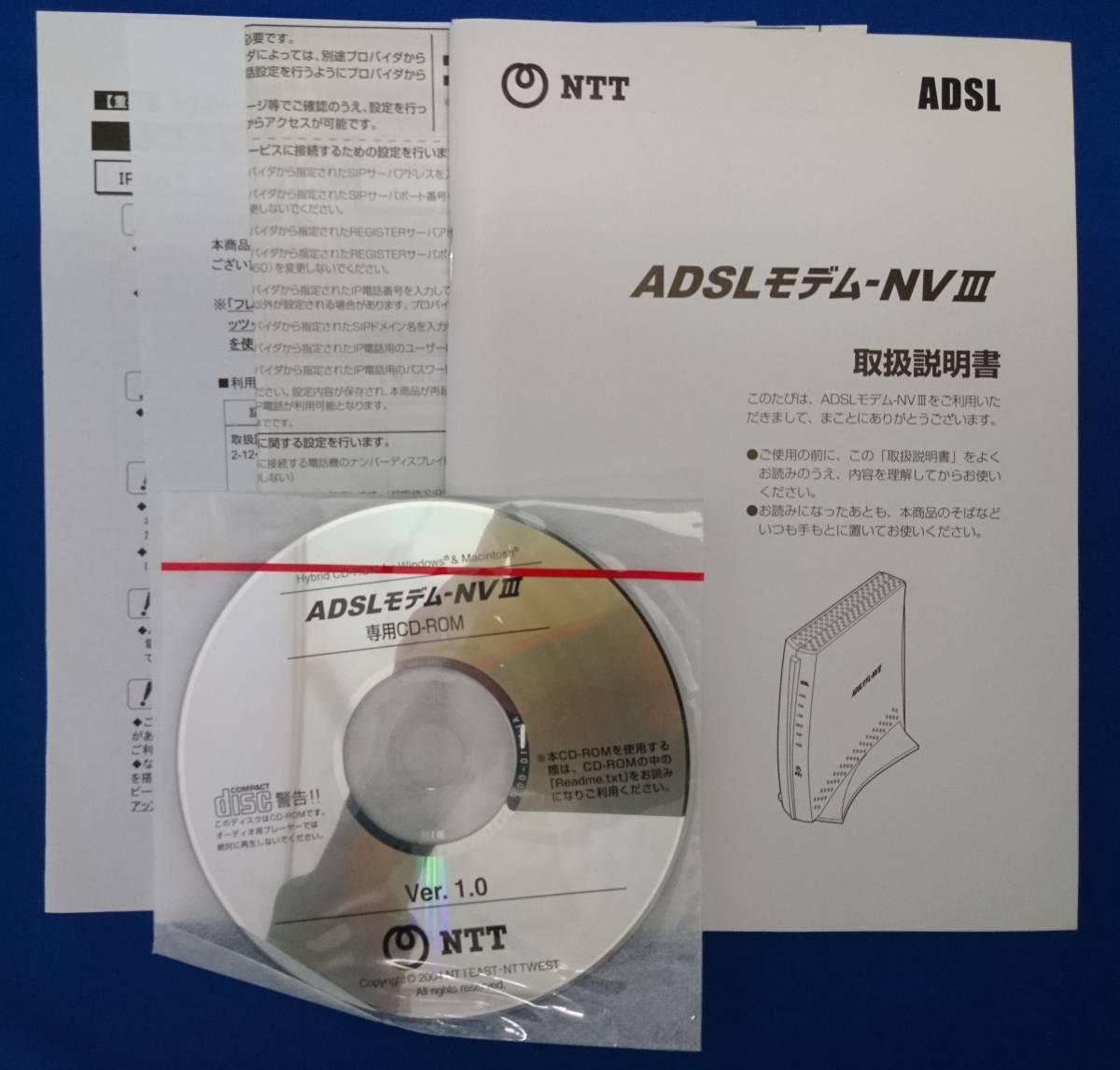 - NTT ADSLモデム-NVⅢ用取扱説明書、付属CD-ROM NV3