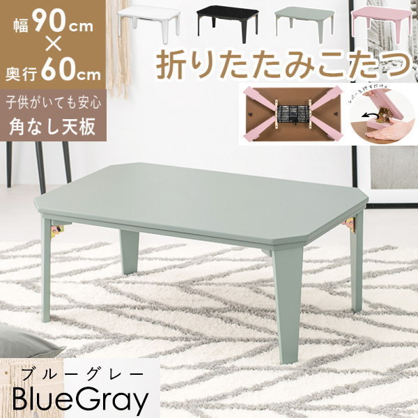 - 送料無料 カジュアルコタツ コタール9060 折れ脚/完成品 長方形 横幅90cm 奥行60cm 石英管ヒーター BLGY ブルーグレー 艶消し