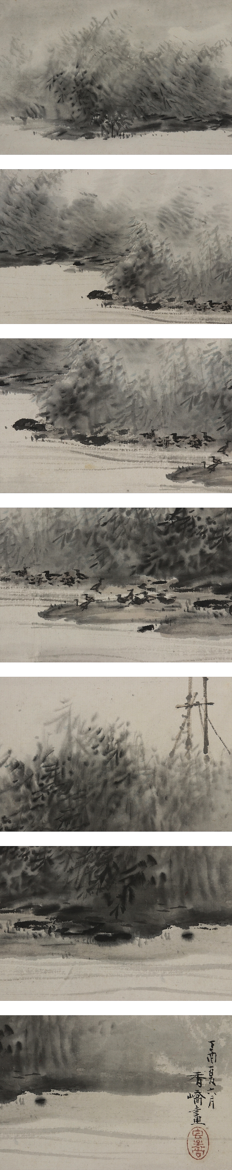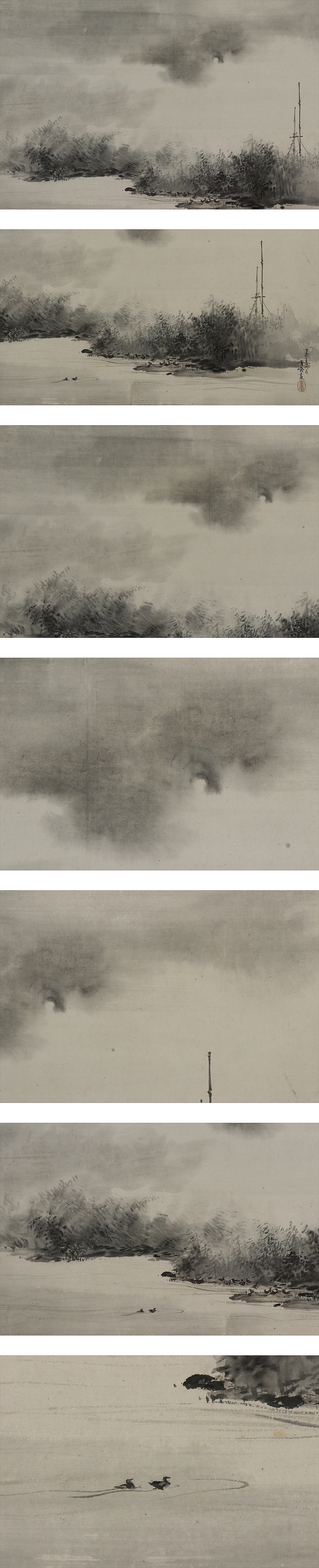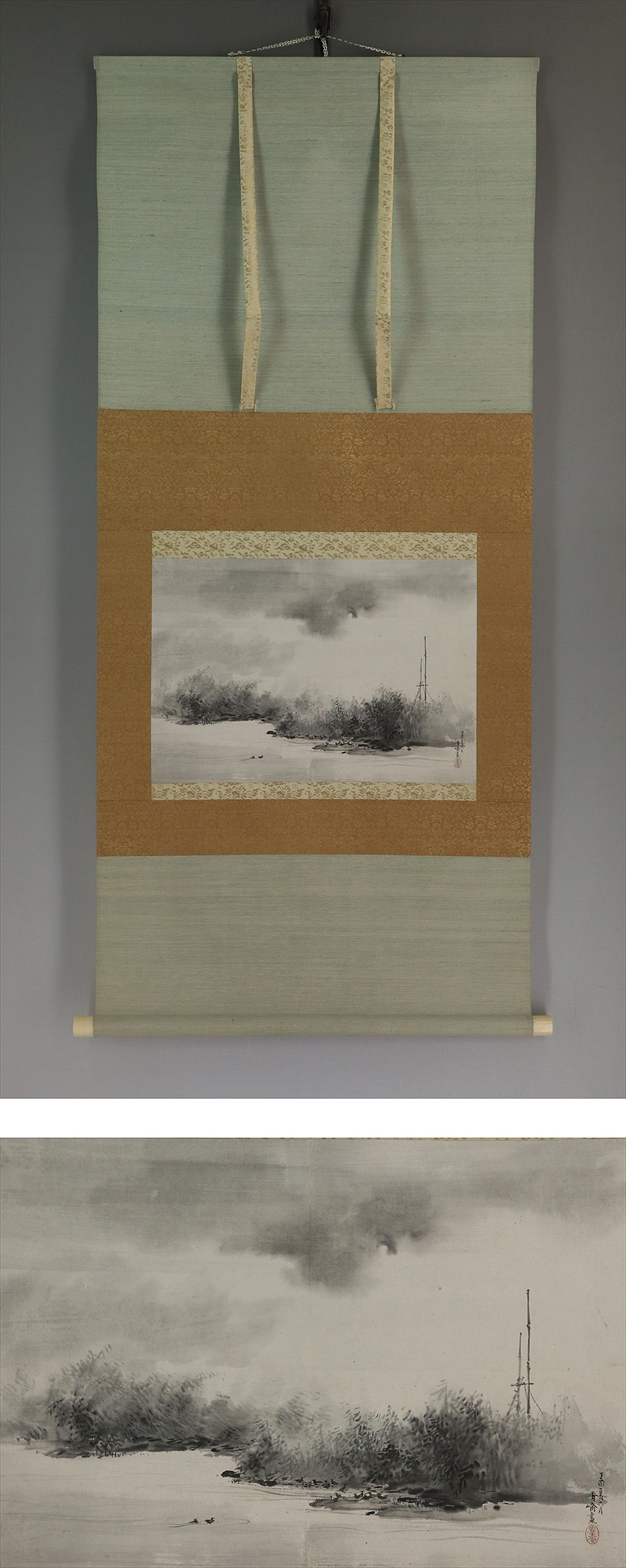 - 【真作】谷口香【水辺遊雁図】◆紙本◆識箱◆掛軸 u04057