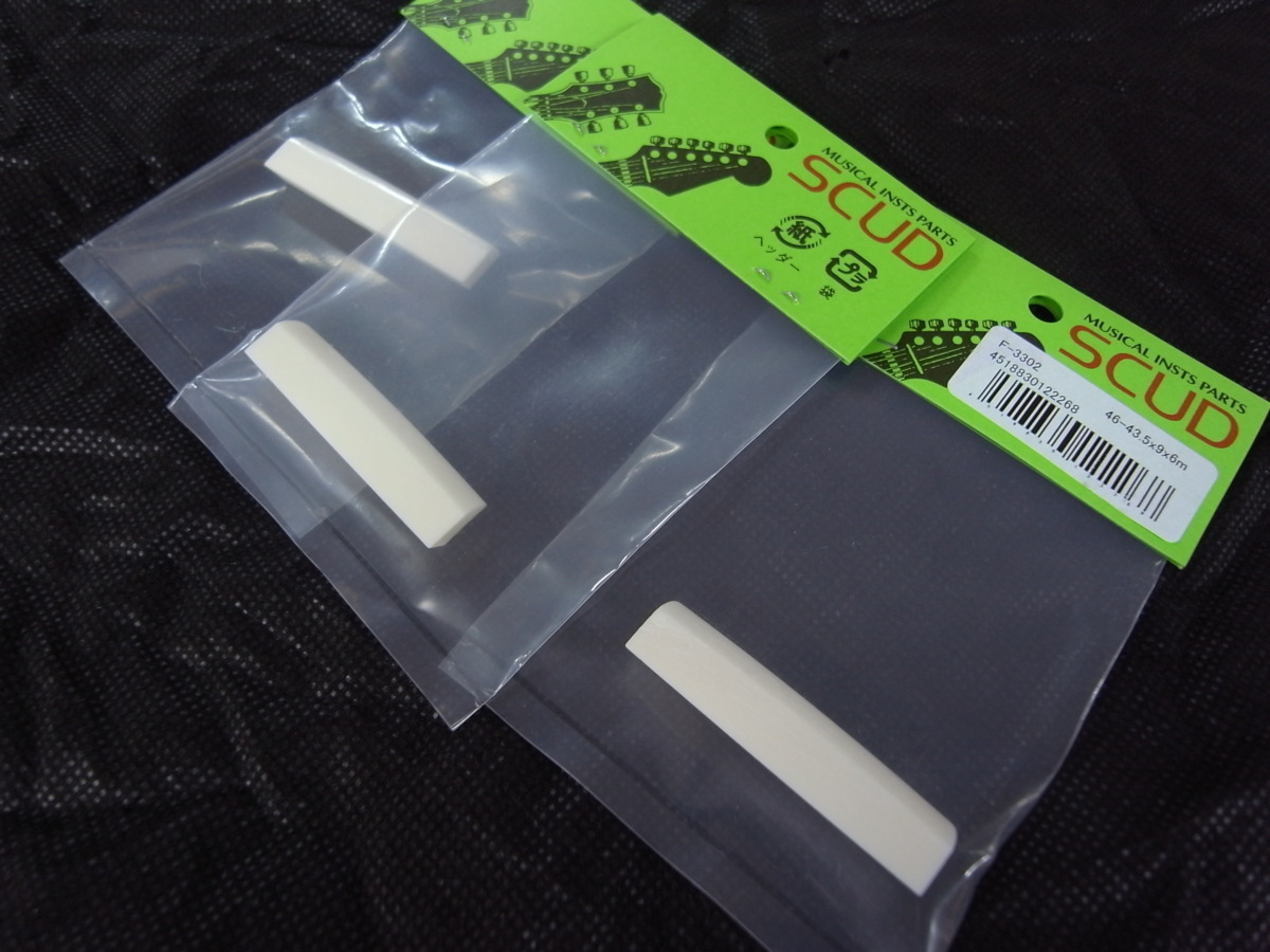 > 【3個組・牛骨・半加工ボーンナット】F-3302・SCUD・マーチン向け・43.5/46 x 9 x 6mm・天然材・修理・リペア