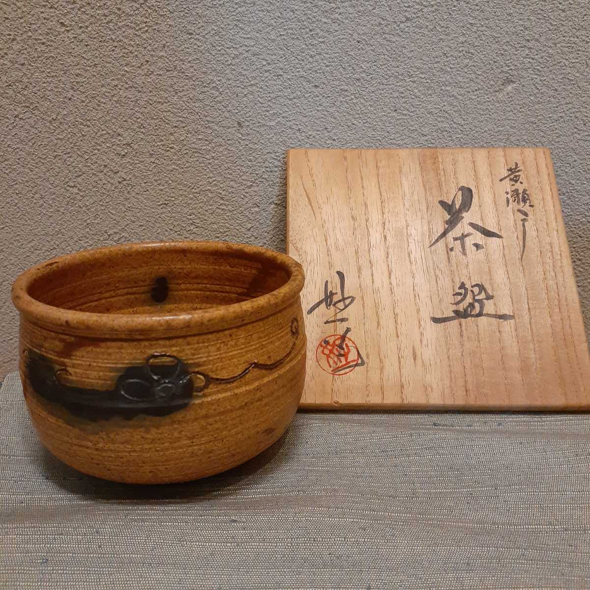 - 茶碗 黄瀬戸 共箱 約11.8cm×7.8cm