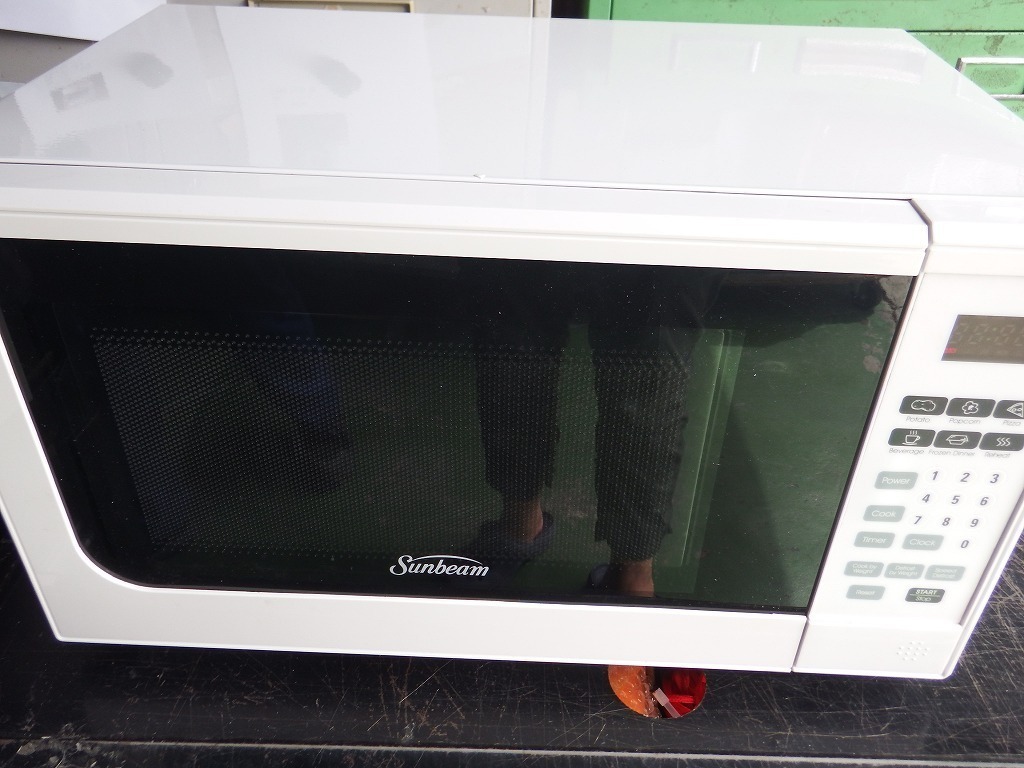 - ■新品訳あり Sunbeam 700W電子レンジ 型番不明 ホワイト 英文表記 おしゃれ家電【J0902】