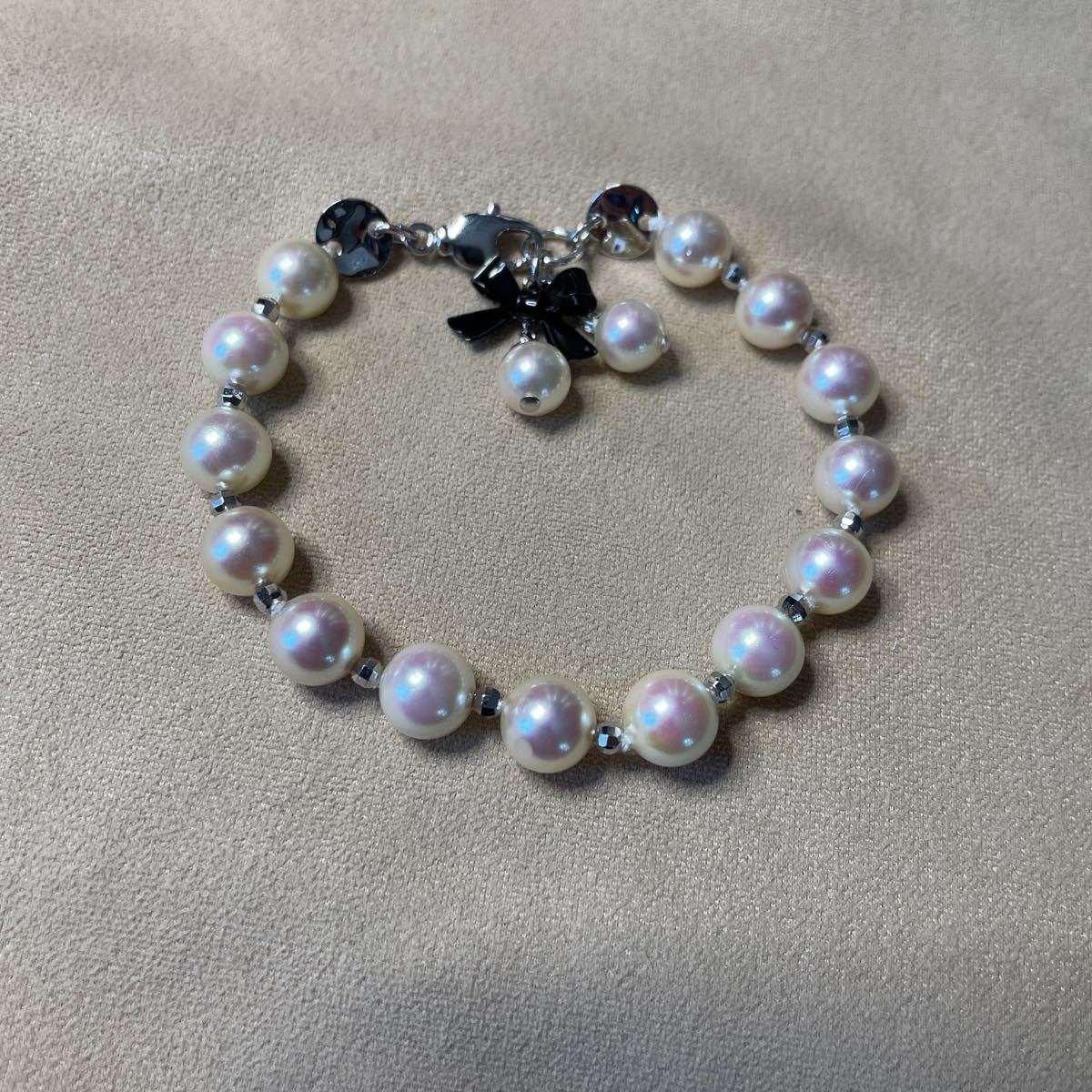 - 貝パール8ミリブレスレット#黒リボン