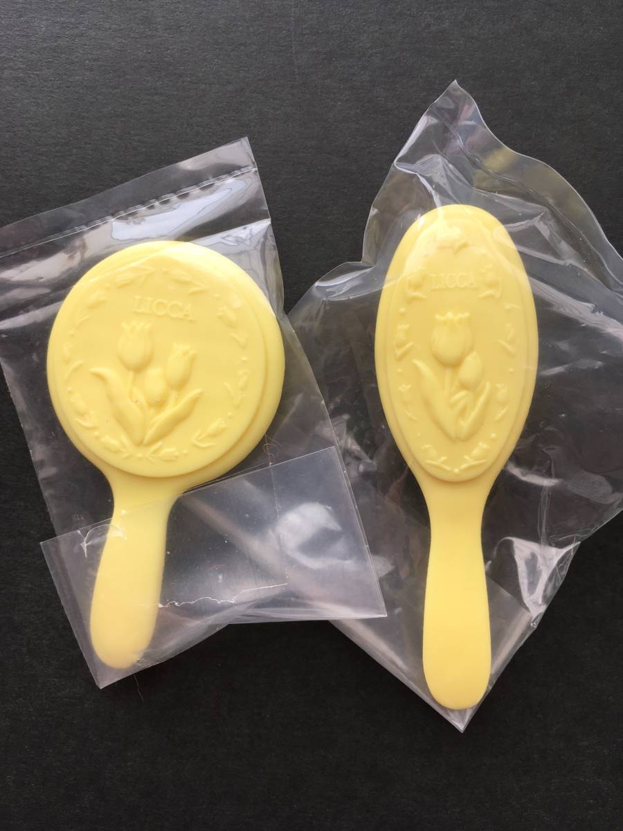- リカちゃん LICCAロゴ入り 手鏡×ヘアブラシセット☆彡 イエロー☆ 当時物!新品未開封品 TAKARA リカちゃんキャッスル
