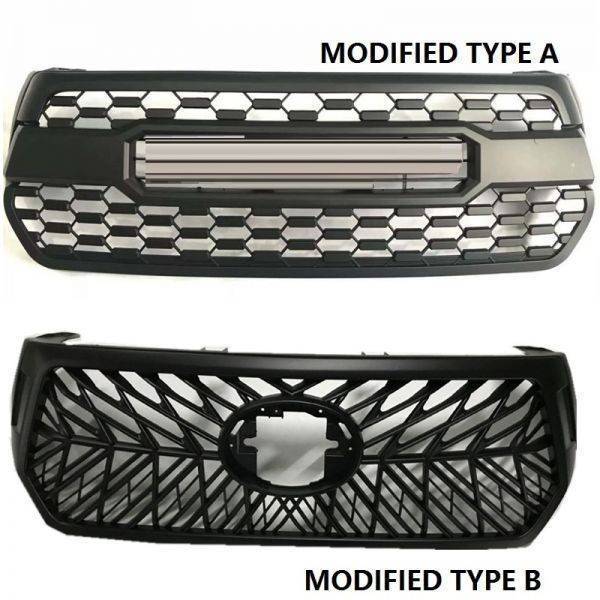 > M00445 ハイラックス レボ REVO フロントグリル ブラックスタイル ロゴ有り デザイン選択可 GUN125 ROCCO