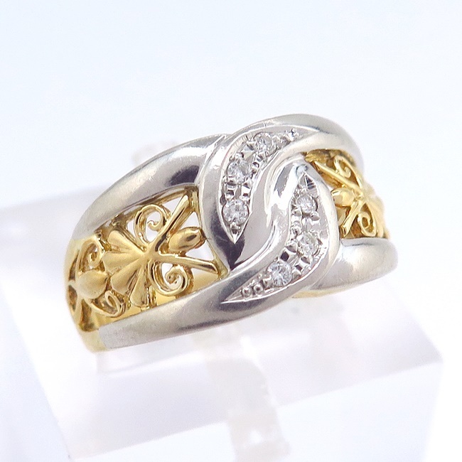 > K18YG/Pt900 イエローゴルド/プラチナ 指輪 リング ダイヤモンド0.060ct 14号 おしゃれ 普段使い【中古】/10024699