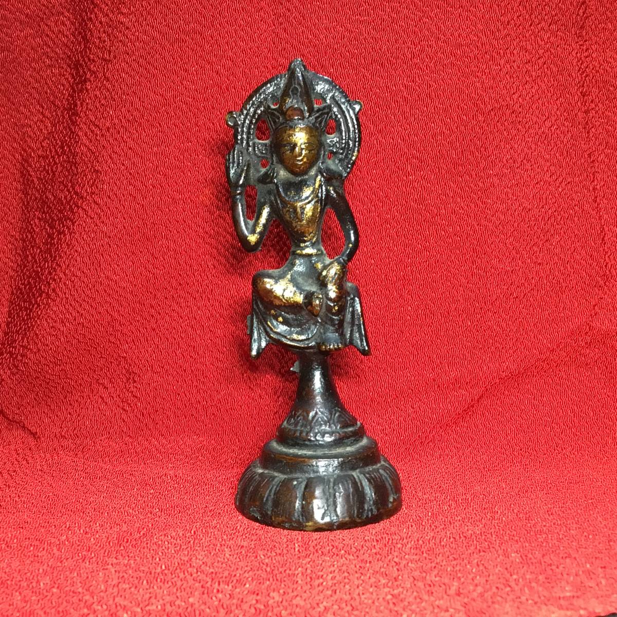 - 収集家よりの初出し 古銅観音菩薩座像 塗金仏 ☆ 念持仏 懐中仏 仏像 御守り 仏教美術