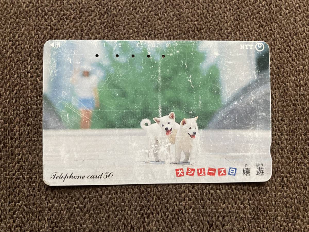 - ★使用済み テレホンカード 犬 シリーズ9 嬉遊 きゆう 白い犬 2匹 いぬ 動物 テレカ 1枚 三重支社 50度数 NTT ミニレター