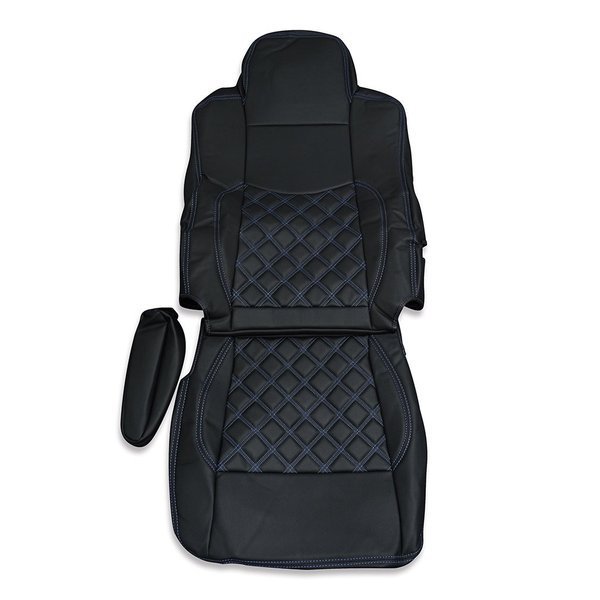 - 三菱ふそう スーパーグレート シートカバー 艶無し 黒 運転席用ダイヤモンドブルーステッチ AP-CV005R-BL