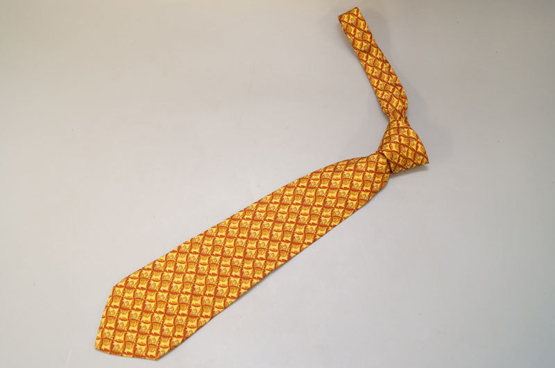 > yo64-Salvatore Ferragamo サルヴァトーレフェラガモ ネクタイ オレンジ系 アニマル柄 サル柄 動物柄 イタリア製