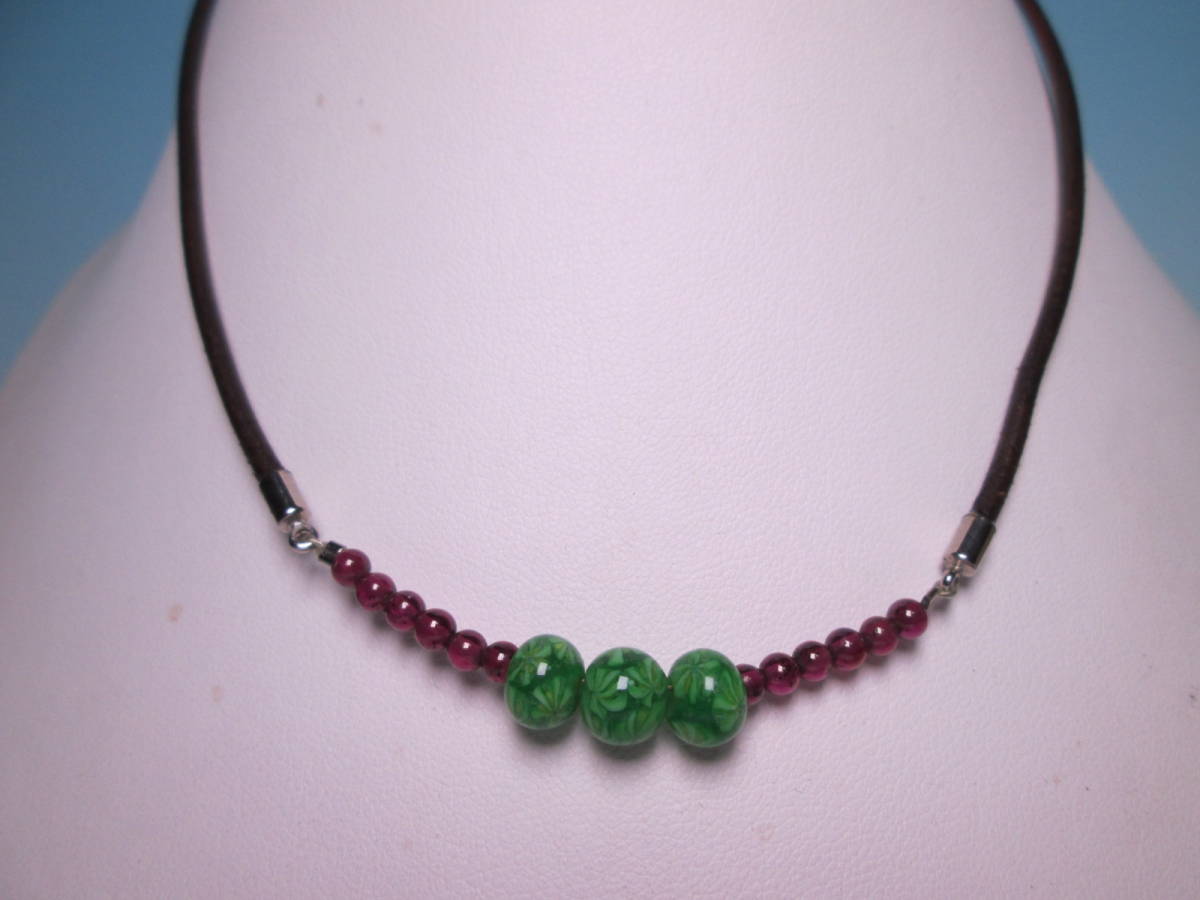 - ☆古法窯つくり 藤村トンボ玉工房 藤村眞澄作 K18 蜻蛉玉&ガーネットのデザインネックレス 未使用品