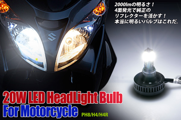 > LED ヘッドライトバルブ バイク用 4面発光 20w 2000lm (H4 H6 PH8) H・L切替