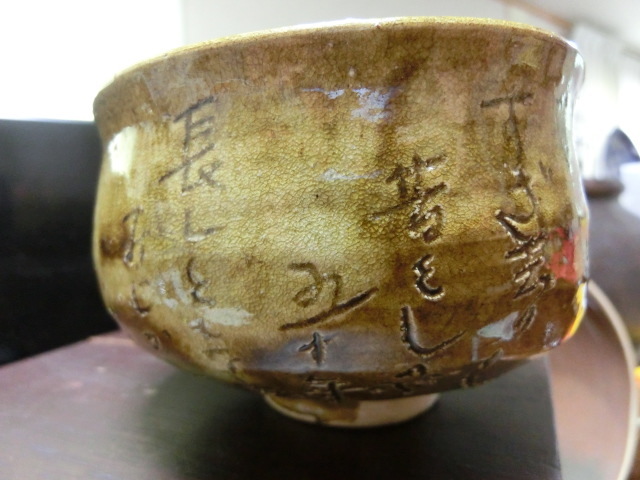 - 楽七抹茶茶碗 作者刻印 吉翁何とかと書いて有りますが、作者後半読めません、哲金と書いたのも作者かもです、年代不明