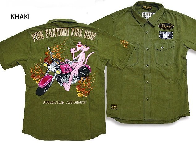 > ピンクパンサー×フラッグスタッフ半袖ワークシャツ◆Flagstaff カーキXLサイズ 422075 フラグスタッフ 刺繍 バイカー