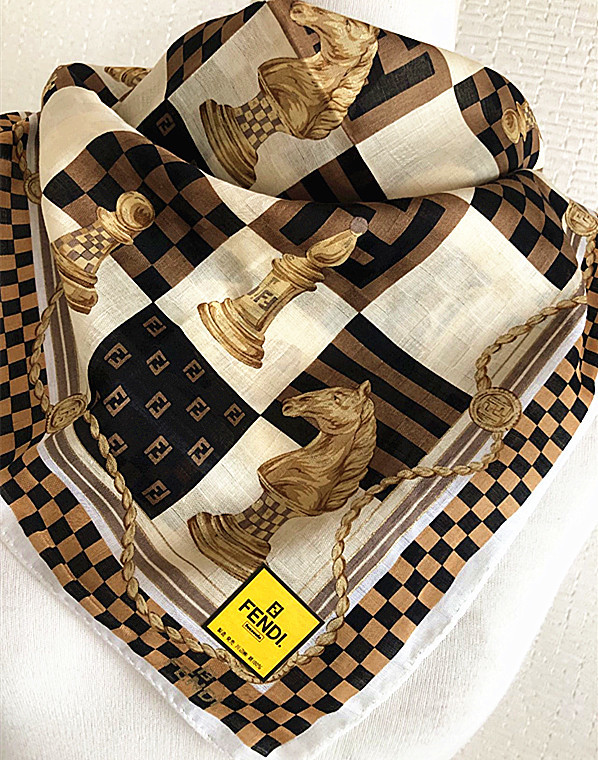 - FENDI フェンディ【レア柄】ズッカ&馬頭柄大判ハンカチミニスカーフ★膝掛け(0624D71375)