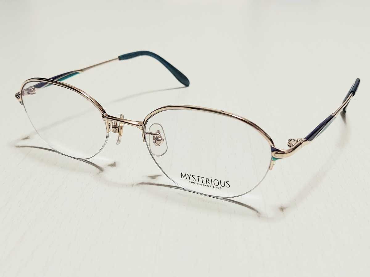 > 新品 MYSTERIOUS ミステリアス 日本製 メガネ 眼鏡 高級感 オシャレ 上品 ハーフリム 軽い ゴールド