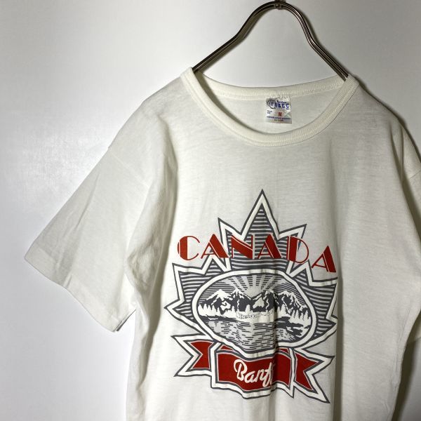 - 【レア】90s ビンテージ Canada カナダ プリントTシャツ サイズM アイボリー お土産Tシャツ カナダ製 古着 希少 80s シングルステッチ