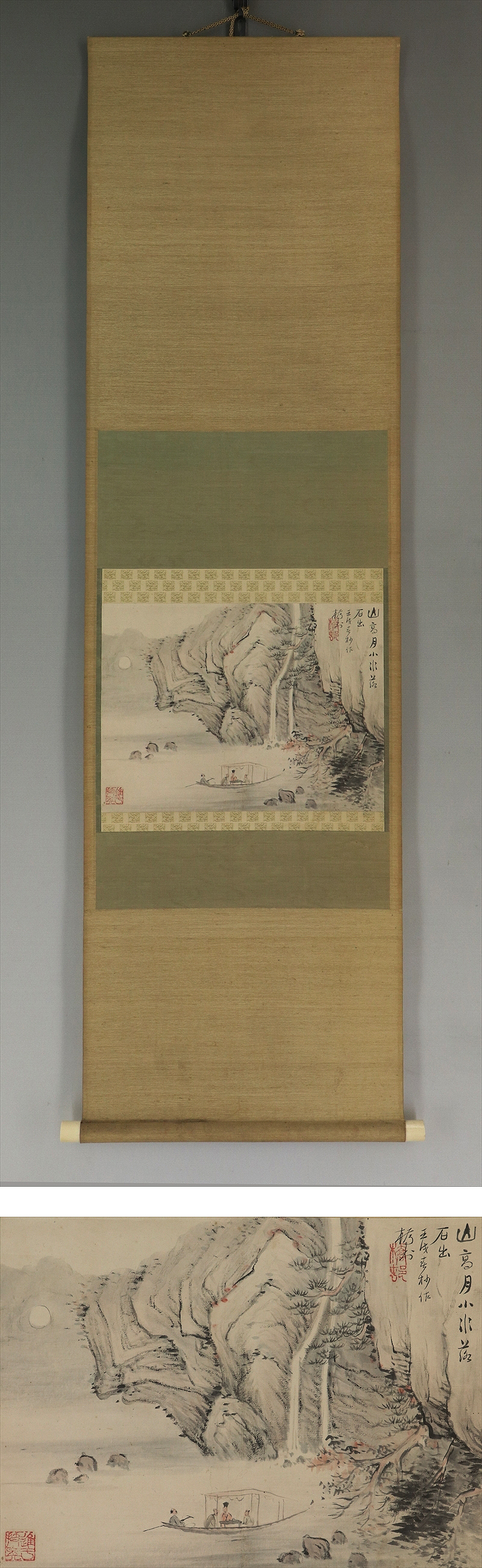 - 名品【真作】矢野橋村【月下浮舟図】◆紙本◆合箱◆掛軸 u05030