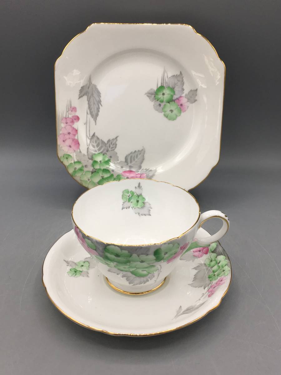 - シェリー トリオ カップ&ソーサー ケーキ皿 花 カップアンドソーサー