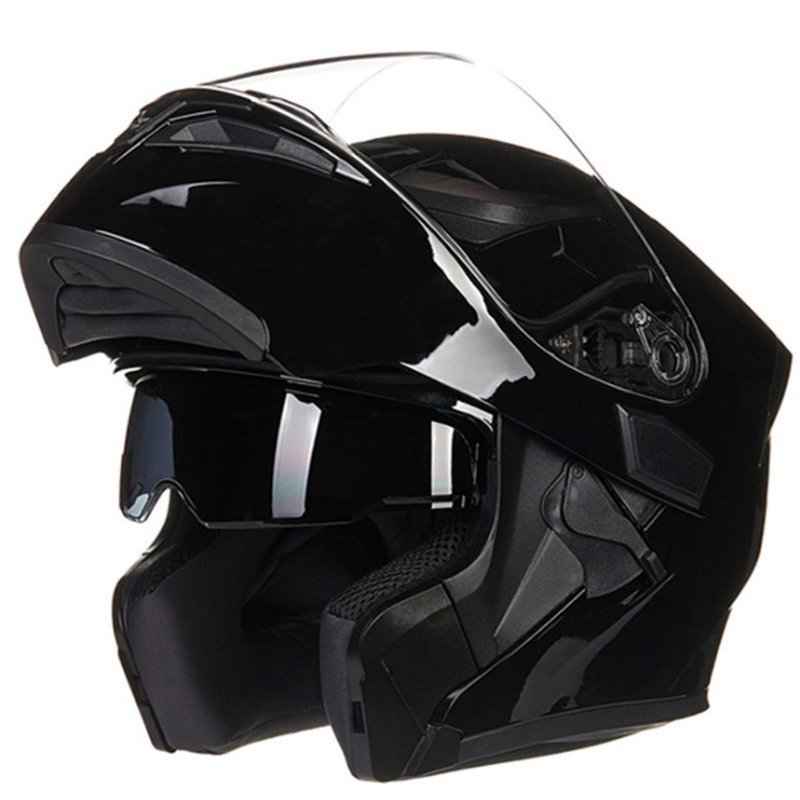 > TZX236★システムヘルメット バイク用品ヘルメット 6色選択可フリップアップ シールド付き ワンタッチ式艶有り黒
