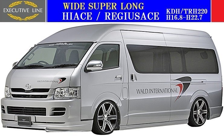 - 【M's】トヨタ ハイエース 220 1/2型 ワイド スーパーロング用(H16.8-H22.7)WALD EXECUTIVE LINE V2 エアロ 3Pキット(F+S+R)//ヴァルド