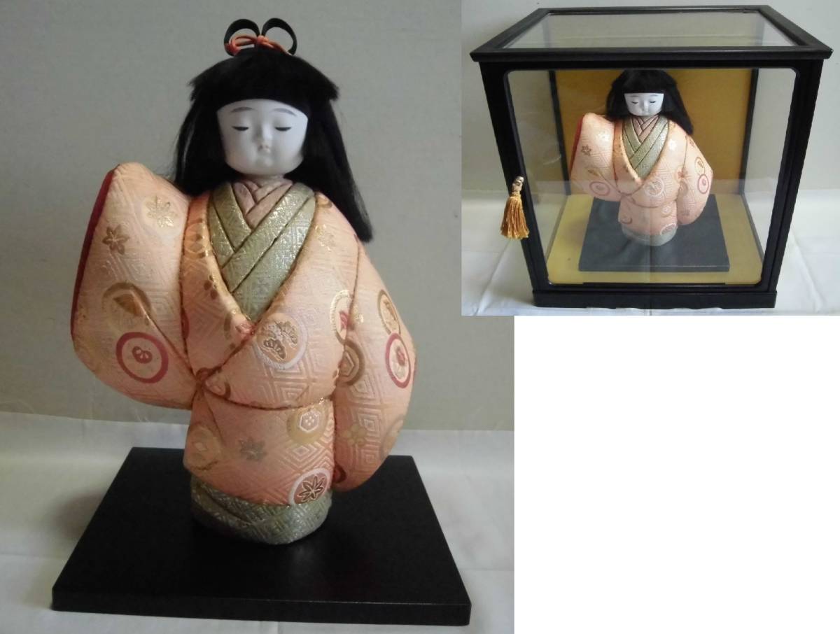 - 木目込人形 ガラスケース入り 前扉式 わらべ人形 日本人形 置物 飾り物 工芸品 レトロ