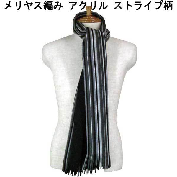 - 激安 パーピース メリヤス編マフラ- グレ-×黒ストライプ25×180