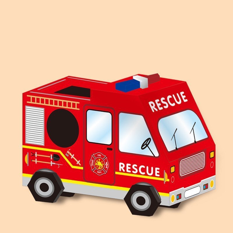 - CJM326★知育工作キット 車 パトカー 消防車 救急車 キッズ 組み立て おもちゃ 紙素材 安全 おうち遊び 作る おうち時間 レッド