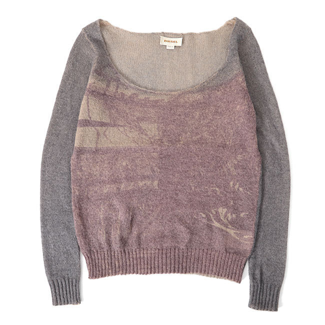 - 古着 DIESEL ディーゼル グラフィック Uネック ウール ニットセーター S ベージュ レディース