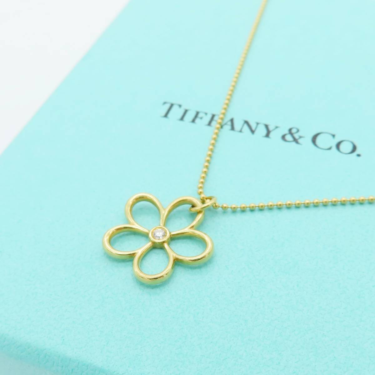 - 希少 美品 Tiffany&Co. ティファニー 1P ダイヤモンド イエローゴールド フラワー ボールチェーン ネックレス 750 K18 II11