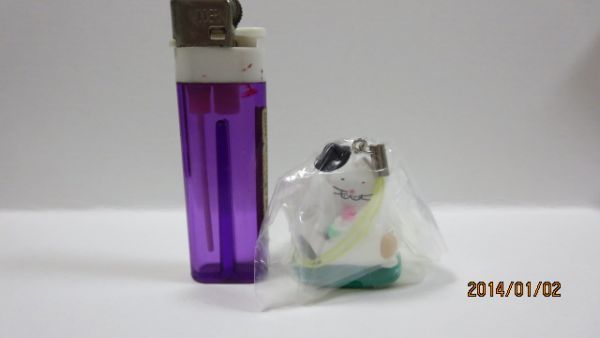 - 再) ☆でぶねこスコ座りストラップ~シロ未使用品1個